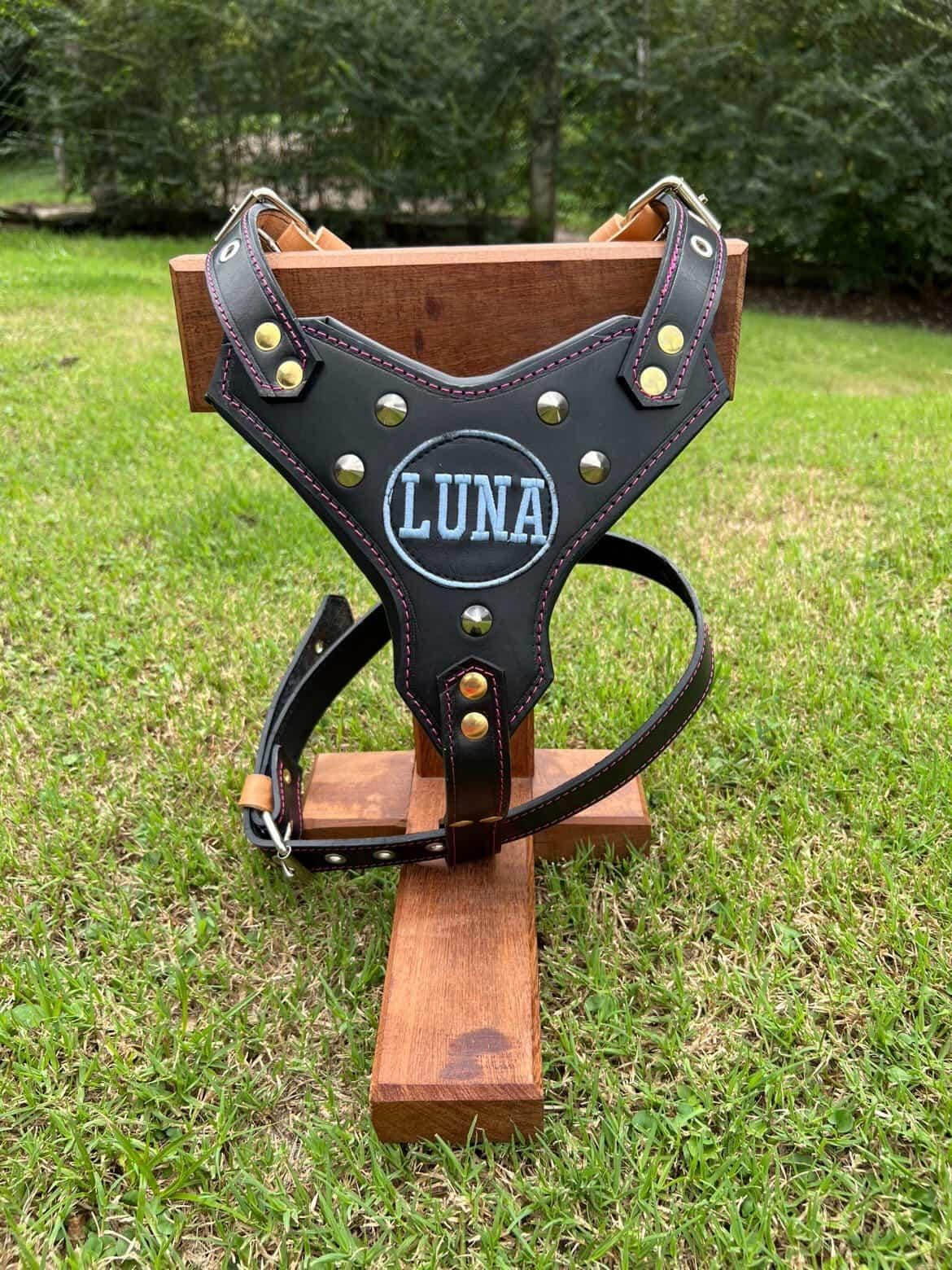 Este arnés de cuero premium se fabrica bajo pedido, a medida y con acabados de alta calidad. Cada pieza es un unikat (pieza única): resistente, cómoda y pensada para el uso diario.